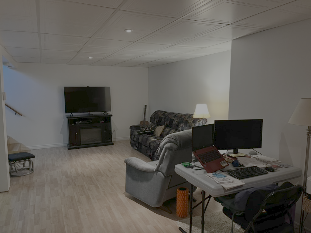 Salon - Salle de jeux - Une chambre - Une salle de bain - Salle de lavage et espace de rangement